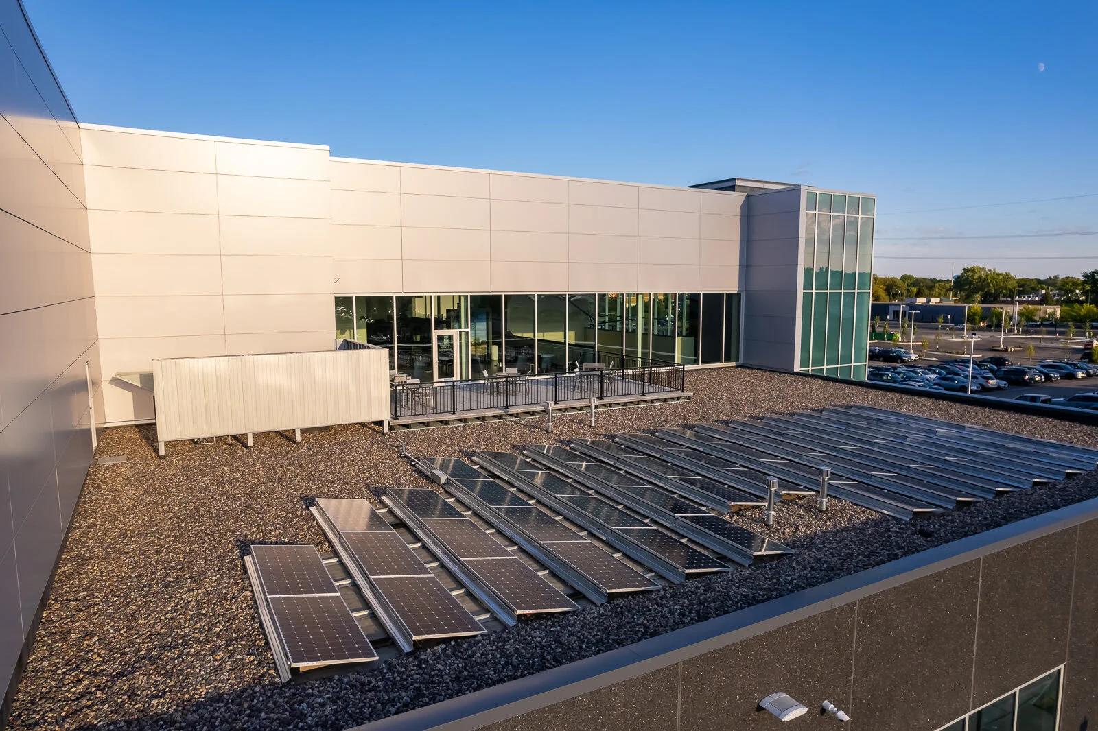 Includes 38 bay service shop, three new vehicle delivery bays, two level parts department, and a vehicle lift to transport vehicles to the unique 2nd level show floor and sales department. This project incorporated a rooftop patio, solar arrays, and many more additional features.