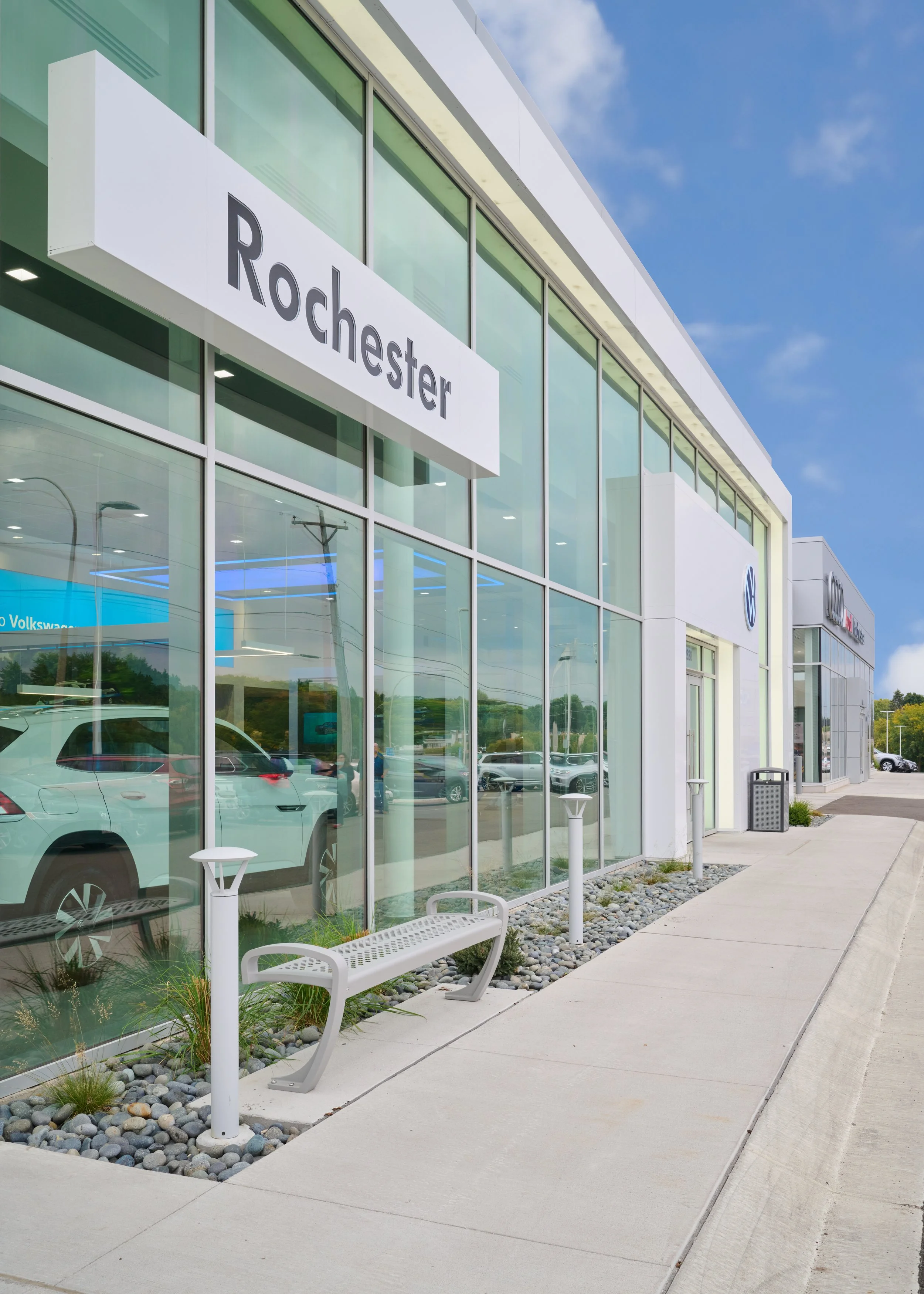 Construction of a new triple branded dealership consisting of a showroom, shop, car wash, storage mezzanine, and a stand alone trash and storage enclosure. Work also involved a phased 547 stall parking lot development with construction of a new retention pond, retaining wall, and demolition of three existing buildings totaling 28,200 SF.