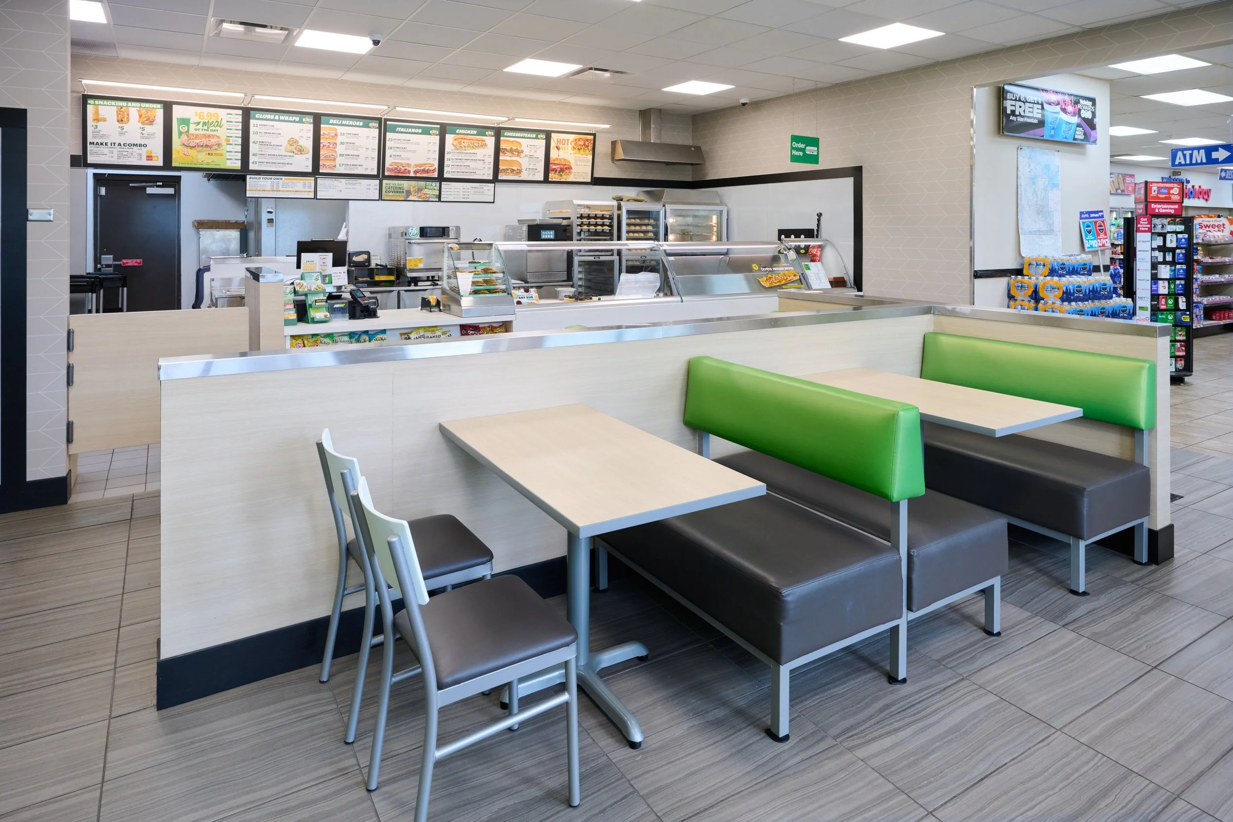 Interior remodel of Subway Store including demolition of existing finishes and fixtures; Installation of millwork and equipment; Drywall patching; Ceramic Tile, Acoustical Ceiling Tiles; FRP; Wallcovering; New walk-in Cooler / Freezer; Relocation of Mop Sink.